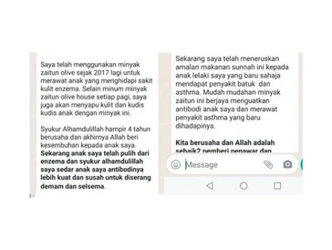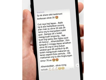 When I returned to using Olivie Plus 30x, Alhamdulillah, with Allah’s permission, I recovered as usual. I continue to strive and pray for the best so that I can stay healthy and worship Allah in the best way possible.