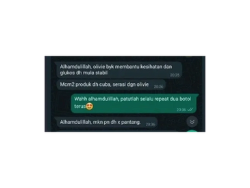 Alhamdulillah, Olivie Plus 30x has helped a lot with my health, and my glucose levels have started to stabilize. I've tried many products, but Olivie Plus 30x works best for me. Alhamdulillah, I no longer have dietary restrictions.